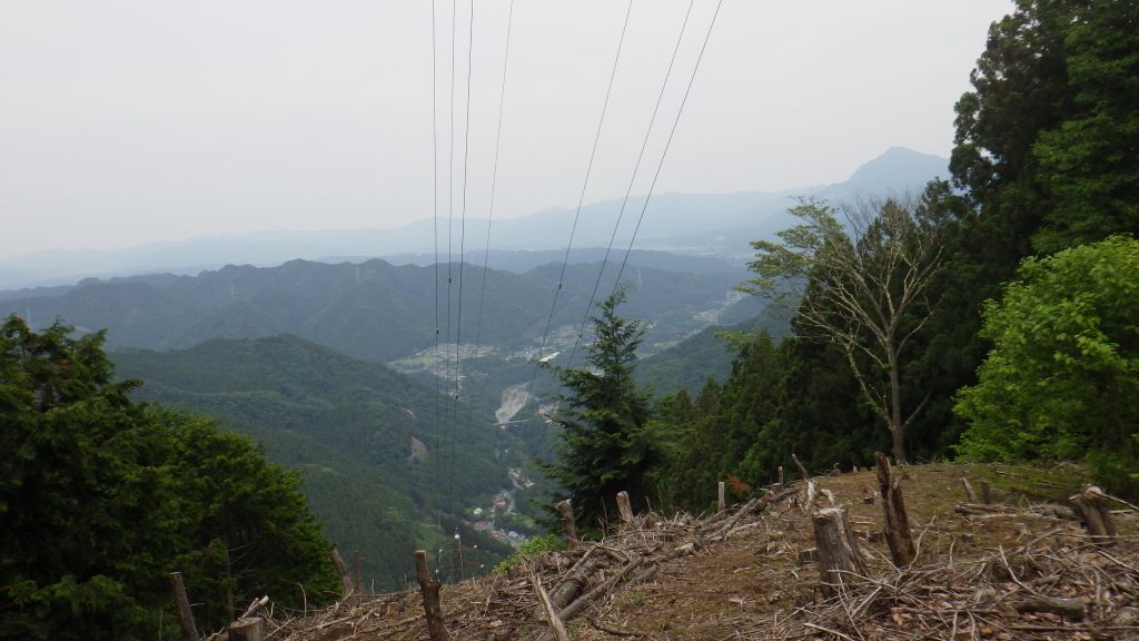 下りも足場がしっかりしたヤセ尾根、下りに休憩した鉄塔からは急峻な地形が望まれた。杉ノ峠からは長く、緊張の糸がきれながらも慎重に下りきり無事国道に下山。