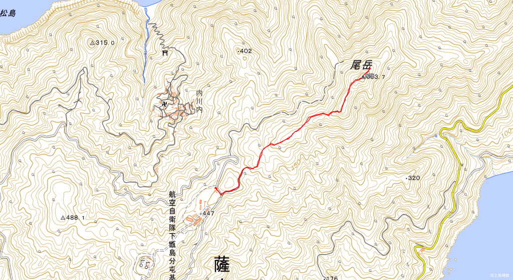 最高峰だが自衛隊基地脇が登山口で標高差は100m強、広葉樹林の森に日は遮られ快適、しっかりと整備された登山道は小さなアップダウンを繰り返し一等三角点の尾岳。視界維持か左右の樹木は無く視界が開けていた。また第二展望所は上甑島方面が望まれた。