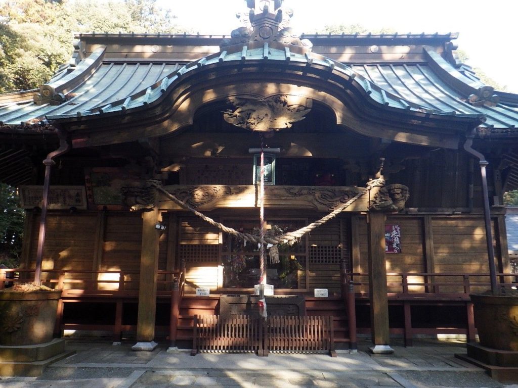 岩間駅西口からスタート。天正宮先から車道をショートカットする登山道に入る。車道に戻り暫くすると愛宕神社の鳥居。300段を超えるといわれる急な石段を一歩一歩休まず登る。奥の飯綱神社もお参りして再度登山道に入る。