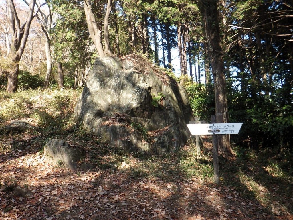 スタートからアップダウンが続く、団子石峠までは低山の稜線上に桜の木が植えられた幅広の縦走路が延びていた。車道を横切り急斜面の登山道を登ると団子石、ランチタイムとする。